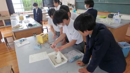 水溶液に電流が流れるもの、流れないものを確かめ、イオンの学習につなげます。