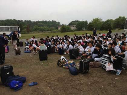 現在旅行団は山中湖村でのクラス集合写真、学年全員の全体写真撮影を終えて、バスで東京都内班別研修に向かっています。写真撮影に少しだけ時間がかかり十分程度出発が遅れましたが、大した遅れではありません。現地は小雨が降っているとのことです。