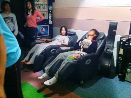 ペンションにはこんなものまで用意されていました。マッサージ中、1日の疲れを癒しているのかな?