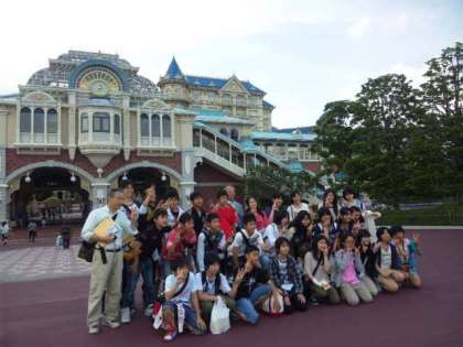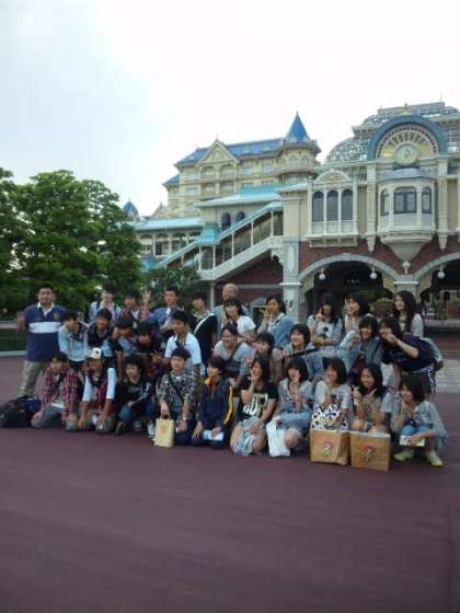 修学旅行だより(30)ディズニーランド前集合写真その1