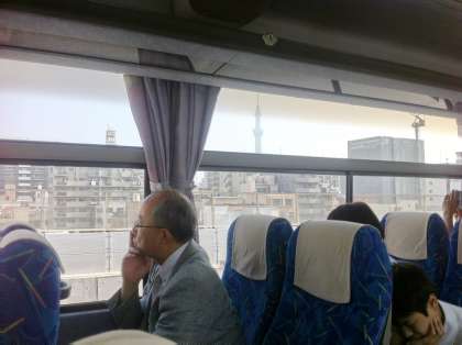 東京タワー(戦災資料センター)への移動中のバス車窓からです。校長先生もお疲れでしょうか?でも電話での声は明るくて元気でした。