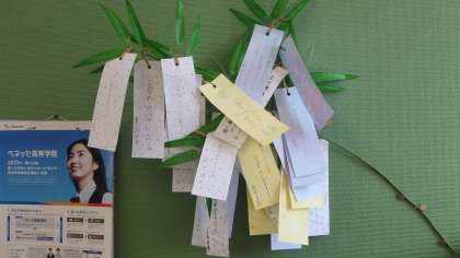 今日は、七夕ということで、クラスでもそれぞれ願い事を書きました。3年生なので、夏季大会に向けてや志望校合格のお願いが見られました。自らの努力で叶えていきたいですね。