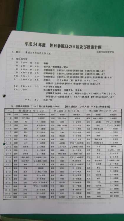 授業参観は1限〜3限です。4限はPTA総会にお越し下さい。