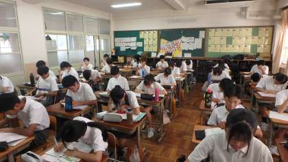 朝から総括テストに向けて気合を入れて勉強に取り組んでいました。