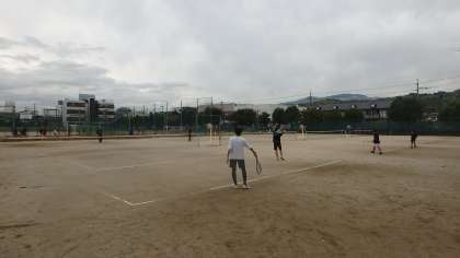 乱打中のテニス部とアップ中のバドミントン部の様子です。