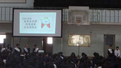 選挙管理委員会主催のもと、生徒会役員選挙が行われました。2年生、1年生からの立候補者の演説を聞き、一票を投じます。新しい桂中学校のために!