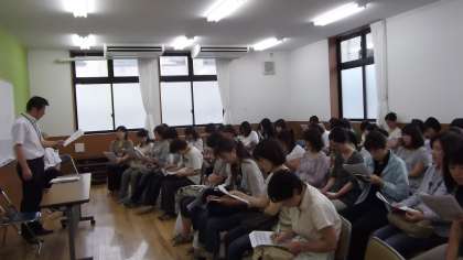 7/4(火)午後2時20分〜会議室において、今年度の教育課程説明会を開催いたしました。保護者は会議室一杯の52名の参加がありました。