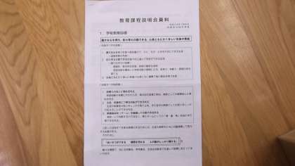 学校長から教育目標や新教育課程の説明ののち、本校の教育課程、週時程、年間行事予定、評価・評定についての教務主任からお話いたしました。