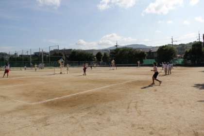 7/8(日)梅雨の晴れ間の1日、本校を会場として、近隣の中学校の生徒による夏季大会女子ソフトテニス個人ブロック予選が行われ、66組の個人ペアが参加、予選通過枠の上位12組を目指して熱戦が繰り広げられました。
