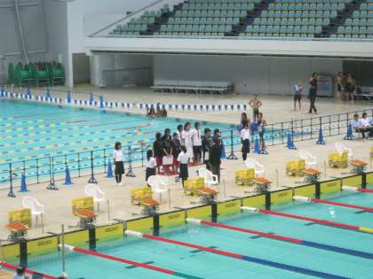 8/6(月)・7(火)の両日、大阪なみはやドームで行われた水泳の近畿大会に本校チーム・選手が出場しましたが、中でも女子400mメドレーリレーチームは近畿で優勝しました。