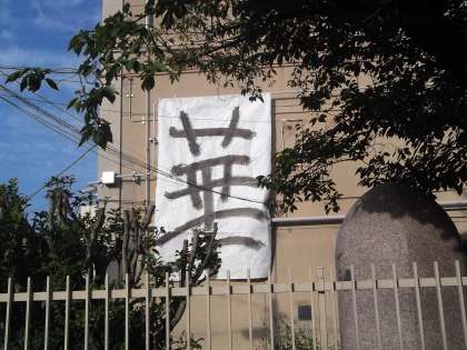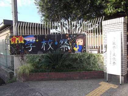 校門付近を飾る看板の数々です。学校祭テーマの「尽」「華」のうち、「尽」は体育大会、今日は文化祭で「華」が校舎壁面に飾られました。