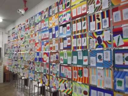 3号館2階奥の美術室では1・2年生の美術作品(絵画)が展示されています。