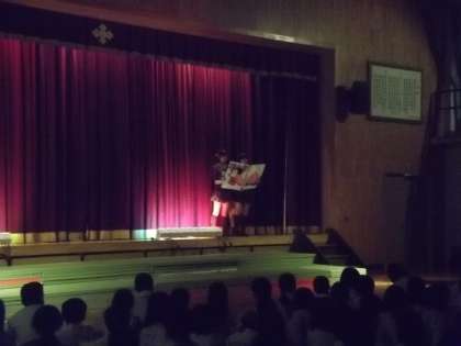 開始後まもなくは少し緊張感が見られたようですが、夏休みからここまでずっと努力して、時にはもめごとやいさかいもあったけど、それを乗り越えて立派な劇になりました。3連休中も学校に登校して練習をしてきた甲斐がありました。