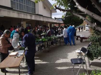 今年も桂高校植物クリエイト、園芸ビジネスの生徒さんと引率教員の方にお越しいただき、新鮮無農薬の「白菜」「キャベツ」などを販売していただき、相変わらず列を作ってお買い求めいただきました。桂高校の皆さん、長時間ありがとうございました。