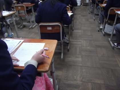 2/27(水)、1・2年生学年最期の総括テスト2日目を迎えました。今日は美術(2年のみ)・国語・保健体育のテストです。静かに整然と受験できています。今日・明日あと2日間、頑張りましょう。