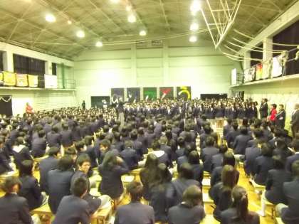 3/13(水)3〜4限で「3年生を送る会」が体育館で行われました。本校は卒業生255名と保護者の参列をいただくため、卒業式当日は1・2年生は代表生徒のみが卒業式に出席します。在校生と卒業生が一堂に会するのは今日が最期となります。