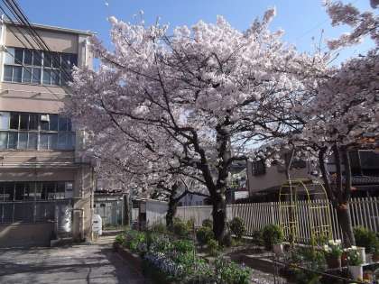 4/5(金)初夏を思わせる暖かい(暑い)1日でした。本校の桜は風にあおられて花びらがハラハラと散りはじめました。この時期に強い風が吹いて、桜の花を散らせてしまうことを「花散らし」というそうです。美しい日本語だと思います。