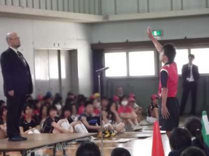 選手入場行進のあと、各部12名のキャプテンが目標や決意表明を行い、男子ソフトテニス部キャプテンが大きな声で、すばらしい選手宣誓を行ってくれました。会場にいた誰もが息をのむほどのすばらしい宣誓でした。