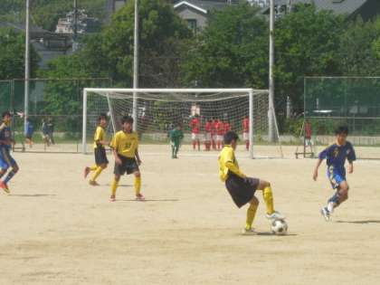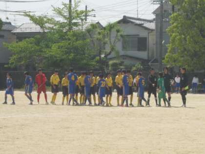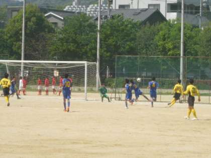 ※写真は2回戦嵯峨中戦(会場桂中学校)です。黄色のユニフォームが本校です。