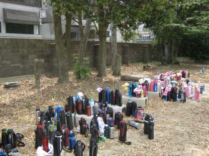 今日は暑いので,熱中症対策の給水もバッチリ!