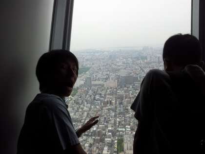 地上350mの天望デッキではしゃぐ某教諭が写っていますが,そこに上る料金は2000円(中学生1500円),さらに上の天望回廊(地上450m)はプラス1000円(同800円)かかるそうです。