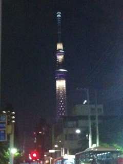 夕食を終え,バスに乗り込む場所から見たスカイツリーが,