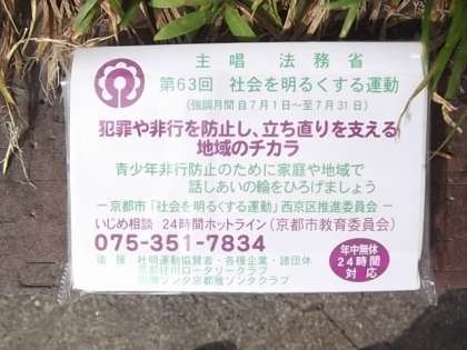 「第63回社会を明るくする運動」街頭啓発(桂中校門前)