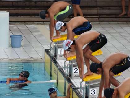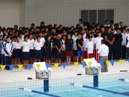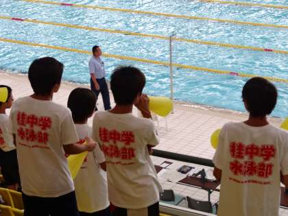 西京極のアクアリーナにおいて,水泳競技の夏季市内大会が行われました。