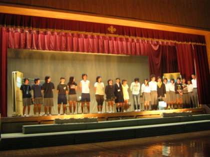 主人公の思いを重ねて,意外な展開を見せる物語なのですが,実は卒業を前にして不慮の事故で親友3人を失ってしまった主人公が,幻想の中で友人と再会するお話です。「残ったものの気持ち」「先に逝ったものの気持ち」がクロスオーバーする本格的な演劇に果敢に挑戦しました。