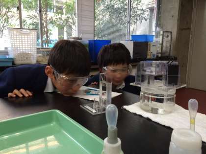 11/29(金)午後から1年生は藤森の科学センターへ行き、クラスごとに実験学習を行ってきました。