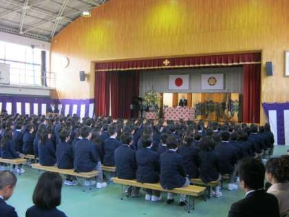 4/8(火),桜舞い散る穏やかな午後1時半より,平成26年度の入学式を多数のご来賓,保護者の参列の中,吹奏楽部の演奏とともに体育館に入場し,さきほど無事終了することができました。