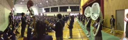 吹奏楽部の演奏と在校生・教職員の温かい拍手の中、新入生が入場し、歓迎会がスタートしました。