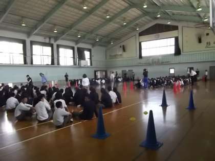 また6限目,3年生は体育館で修学旅行事前学習=団体行動訓練の1回目を行いました。参加生徒271名,引率教職員18名,エージェント添乗員やカメラマンさんを合わせるとい300名弱の旅行団となりますので,迅速な集団行動が求められます。今日は新幹線乗車(5/22木・午前8時56分発)で京都駅2分間停車の間に全員が乗り込めるような訓練を行いました。幸い,大きなバッグ荷物は前日に1日目の宿泊施設の部屋まで配送しますので大混乱はないと予想していますが,安全に確実に乗車できるよう繰り返し整列,乗車,着席の訓練を行いました。(さ)