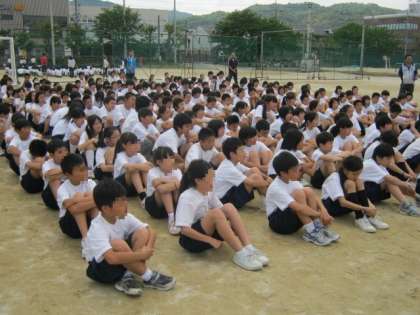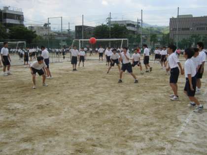 体育委員の進行で開会式が行われた後,1年生らしい熱い戦いが始まりました。