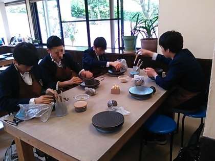 湯呑をつくっているつもりが,どんぶり鉢になったり,重みでつぶれてお皿になったりとなかなか思うようにいかないうえ,焼き上がるとかなり小さくなってしまうのでまたビックリです!