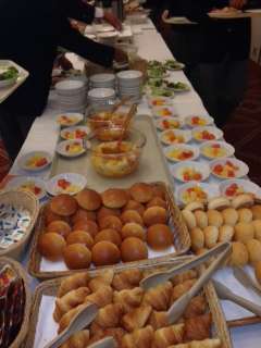 朝食はビュッフェスタイルで,眠むそうな顔をしながらも,みんな遅刻なく集まってきたようです。