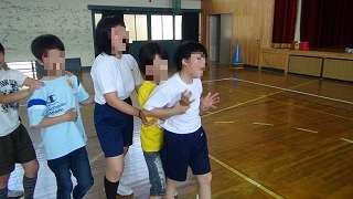 「ようかい体操」「メディシングボール」「バルーン」など,体を動かす内容で,小学生を中学生がサポートしながら,共に楽しく活動することができました。