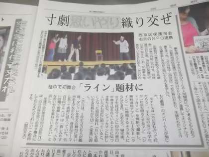 ※昨日の1年生学年道徳,西京保護司会さまの劇が今日の京都新聞朝刊に掲載されました。