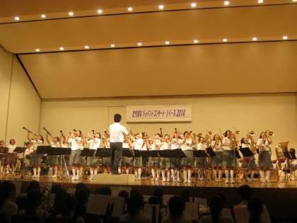 運動系部活動が夏季大会や最後の練習試合を行っている昨日日曜日,これまた最大の目標である「京都府吹奏楽コンクール(8/1(金)16:45〜於京都コンサートホール)」を目指して猛練習に励む吹奏楽部諸君は京都橘高校で行われた「たちばなジョイント・コンサート・シリーズ2014」に出演してきました。