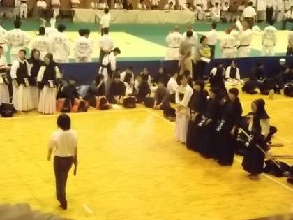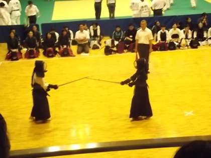 柔道が終わった直後に,今度は剣道の側に大急ぎで移動して,剣道女子団体の1回戦を観戦しました。相手は下鴨中学校,残念ながら初戦で敗退することとなってしまいましたが,ほとんどが初心者で中学校から剣道を始めたばかりの生徒たちが,力強くなっている姿に,その成長度合いを感じることができました。敗れはしましたが,よく頑張りました。また明日の個人戦での健闘を期待しています。(さ)