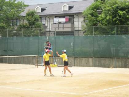 本校テニスコートでソフトテニス部女子団体戦の熱い戦いが繰り広げられました。
