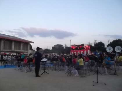 7/26(土),午後5時より桂川小学校校庭で開催された「2014・桂川夏祭り」に本校吹奏楽部が1時間にわたり,日ごろの練習成果を披露し.多くの方々から大きな拍手をいただきました。来賓席で教頭先生とともに鑑賞していたのですが,本当にすばらしい演奏にとても誇らしくまたうれしく思いました。どうぞ来る8月1日の京都府吹奏楽コンクールでは目標の金賞と関西大会出場を目指しての健闘を心から期待しています。