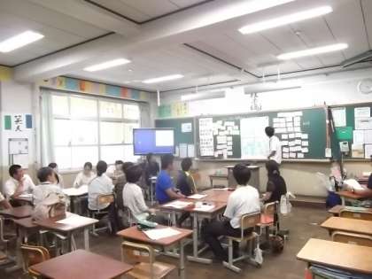 本校1組(育成学級)と1〜3年生から2クラス,合計7クラスで道徳の授業を行い,その後参観をした教室において,4校教員が授業のことについて研究協議も行いました。
