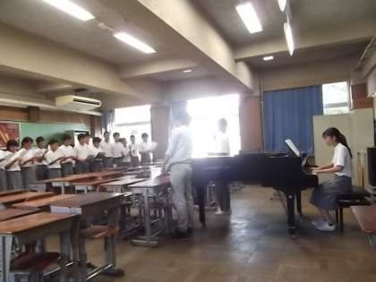 今日は木曜日で通常は5限までですが,テスト前で授業数確保のため6限まで授業をしています。ただし6限目は学級活動を行っており,1年生は音楽室や体育館割り当てがありましたので,各カラスが合唱練習に取り組んでいるところにちょっとお邪魔してきました。