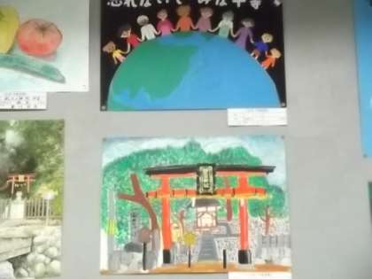 本校からも1年生〜3年生と1組(育成学級)各1点,合計4点の作品が掲示されています。