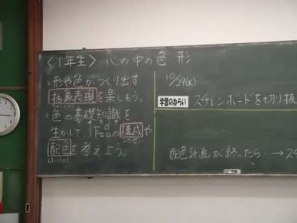 まず1年生,昨日の美術の授業の様子です。学校評価生徒評価において1年生美術はまずまず比較的評価の高い授業です。