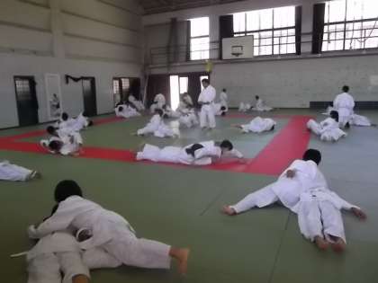 現在各学年とも体育は必修武道「柔道」の授業を行っています。2年生授業の様子は体育「柔道」の様子です。