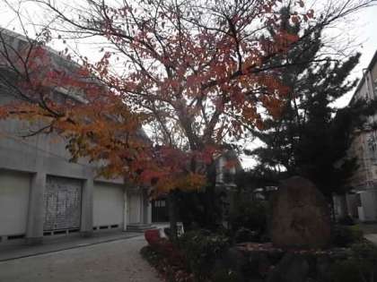 ※写真は本日午後の「豊心」の石碑の様子です。桜の葉が散っています。(さ)