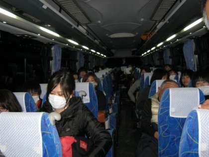昨日は40名を乗せた応援バスが夜9時45分,防寒体制も万全に無事出発しました。