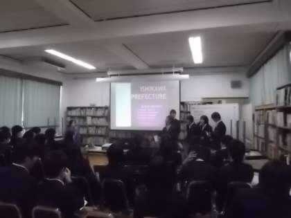 さて,本校が今年度取り組んでいる「学校図書館の授業での活用」も随分軌道に乗ってきました。ここ数日は英語科2年生7クラスが図書館を利用して,英語で外国人に日本の各地を紹介するねらいでプレゼンテーションが行われています。4限目に2年2組のそのようすを参観してきました。